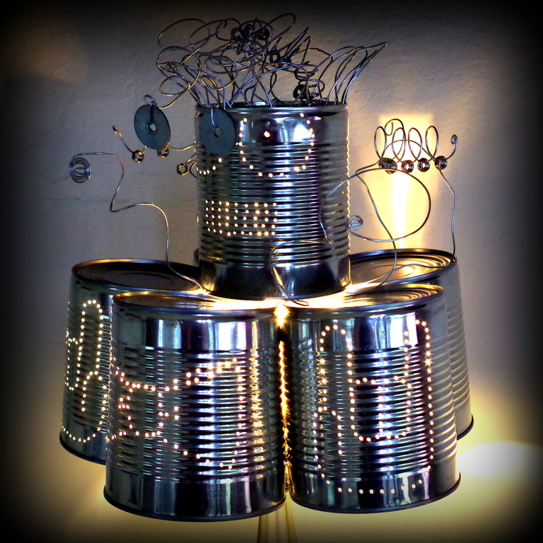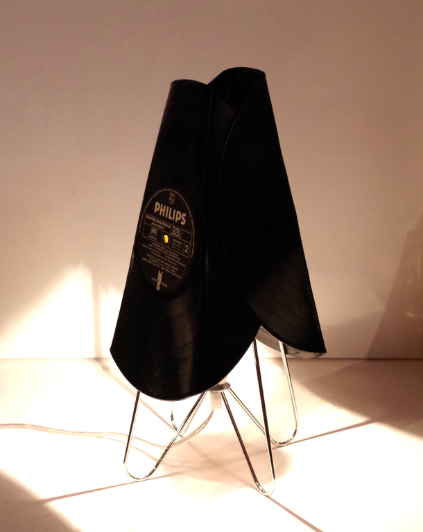 Découvrez mes lampes réalisées avec de vieux disques vinyles, K7, vielles boites de conserves...bref en récup !